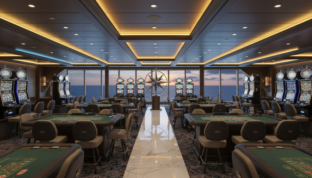 Casinoet ombord byr på både spillautomater og klassiske bordspill. Kildene beskriver et utvalg spill uten spesifikke detaljer om hvilke maskiner eller bordspill som tilbys.